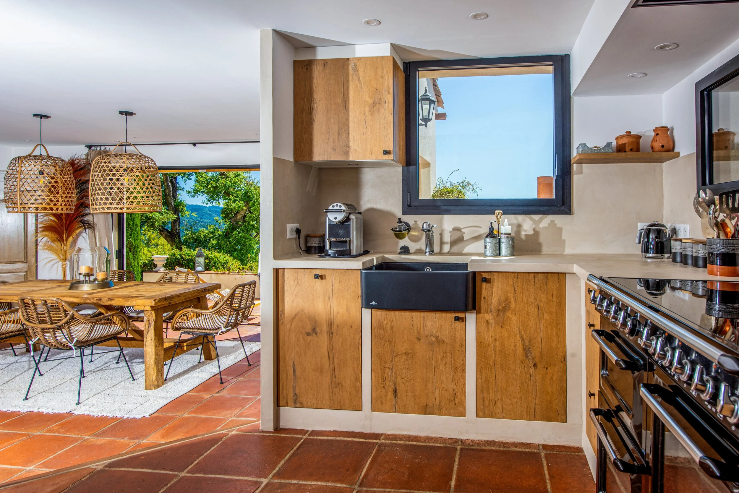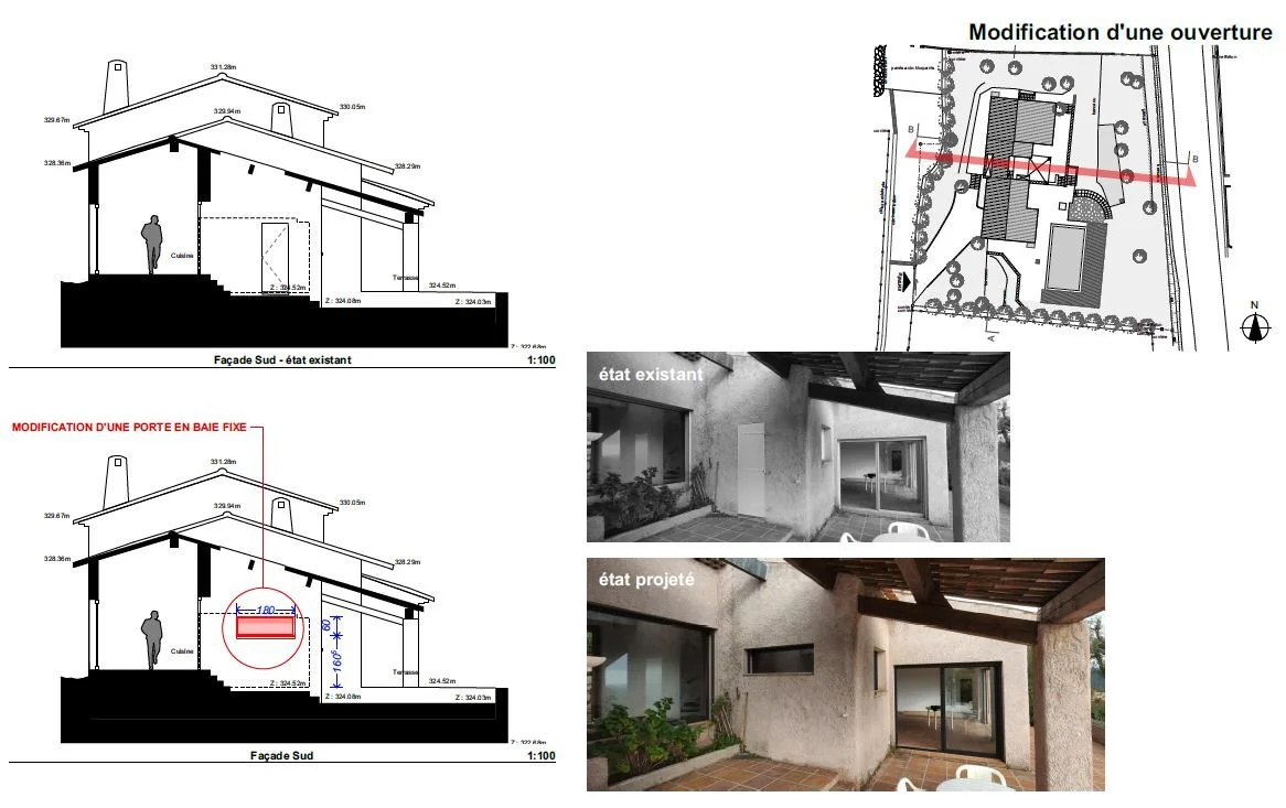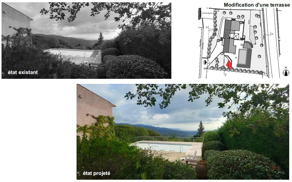 Rénovation intérieure, modification de façade, nouvel agencement et création de pièce de vie, ainsi qu’une extension de terrasse sur pilotis au abord de la piscine.