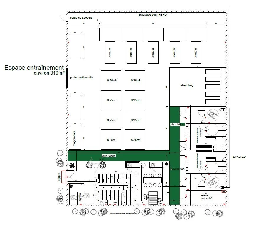 Un hangar de 500m² entièrement pensé pour chaque zone d’entraînement, de réception, de stockage et de change. Coordination et gestion du chantier jusqu’au choix de la décoration, dans le respect des souhaits de nos clients.